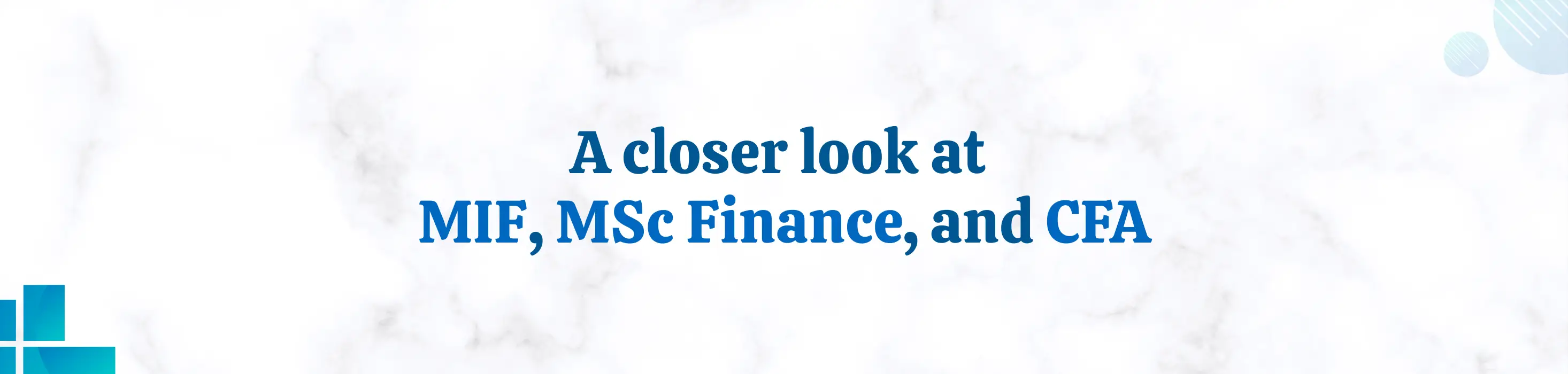 It can be hard to choose the right path to take to move up in your finance career, especially when you have a lot of options, such as the Master in Finance (MIF), the Master of Science in Finance (MSc Finance), and the Chartered Financial Analyst (CFA) certification. Each of these paths has its own set of pros and cons, and knowing what they are can help you make a better choice that fits with your career goals and dreams.